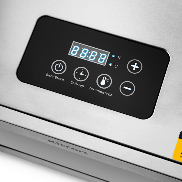 На сушилке можно установить температуру сушки в диапазоне 35-75 С с шагом 5 градусов. Сушилка оснащена таймером до 24 часов работы с шагом 30 минут.