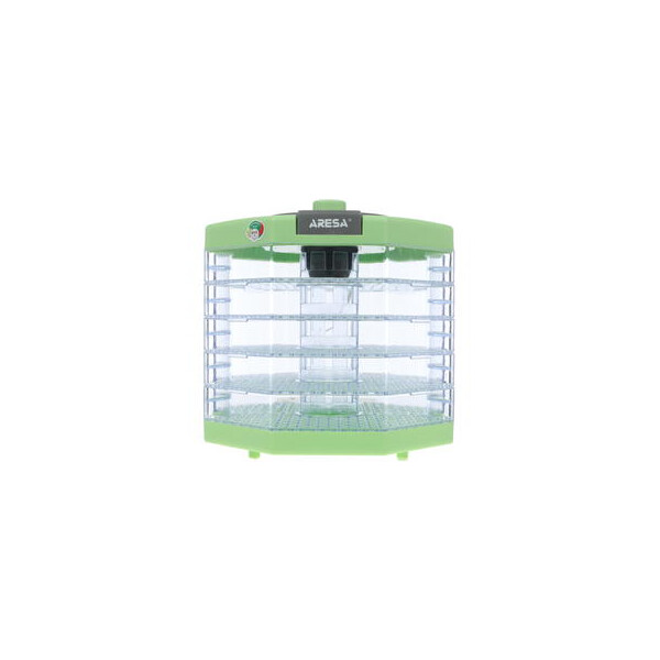 Любите делать фруктовые заготовки, чтобы зимой наслаждаться ароматным и полезным компотом? Сушилка для овощей и фруктов Aresa AR-2601 в зеленом корпусе поможет быстро высушить дары природы. Модель использует конвекционный нагреватель и обладает мощностью 250 Вт. Максимальная температура, которая может быть установлена внутри бокса, составляет 70 ºС, а минимальная – 35 ºС. Благодаря тому, что стенки прибора прозрачные, вы сможете наблюдать за процессом сушки.