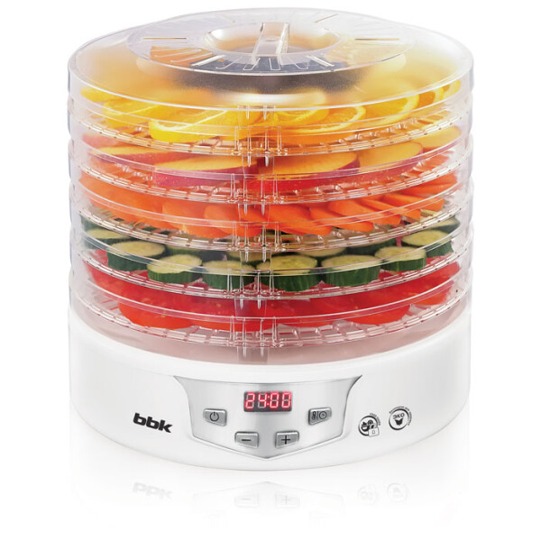 Универсальная сушка для овощей и фруктов BDH305D с удобной панелью правления станет отличным помощником на любой кухне. Корпус из прозрачного термостойкого пластика, регулировка температуры, фен для равномерного распределения воздушного потока - все это обеспечивает легкое и комфортное использование устройства. Для индикации времени сушки на фронтальной панели устройства расположен дисплей.