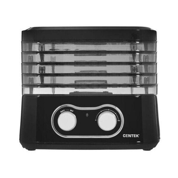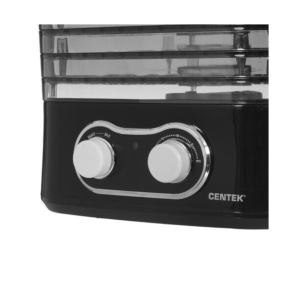 Прибор Centek CT-1659 оснащен регулятором для выбора температуры нагрева в пределах 35-70C. Именно такой диапазон обеспечивает быстрое высушивание с сохранением полезных веществ в овощах и фруктах. А благодаря прозрачным стенкам поддонов вы можете визуально отслеживать процесс обработки.