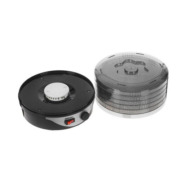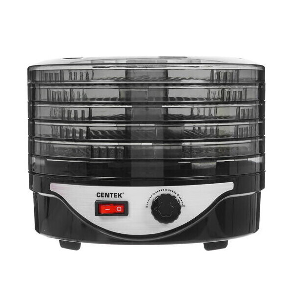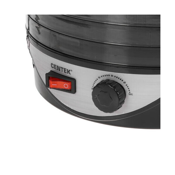 Сушилка для овощей и фруктов Centek CT-1658 оснащена конвекционным нагревателем и вертикальной подачей теплого воздуха. Прибор оснащен пятью секциями с вместимостью каждой по 250 г, что позволяет обеспечить максимальную нагрузку 1.25 кг. Удобный регулятор позволяет выбрать оптимальный уровень нагрева внутри камеры в пределах 35-70C.