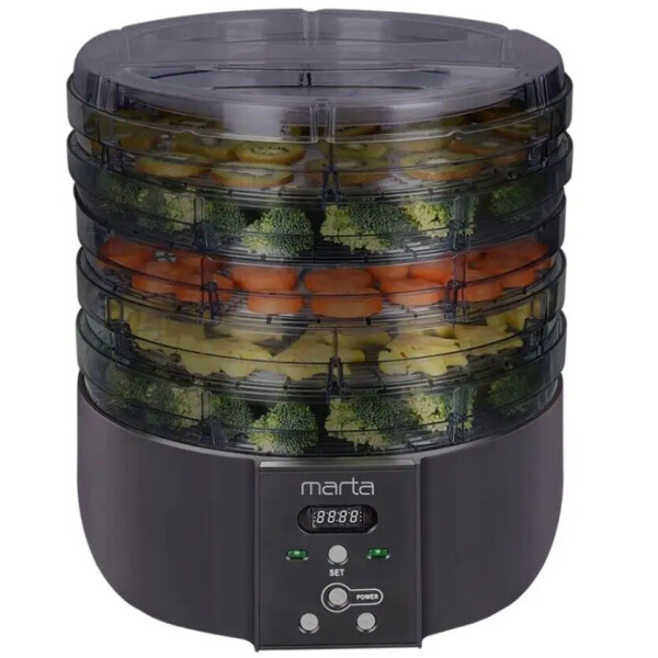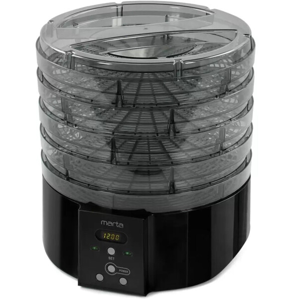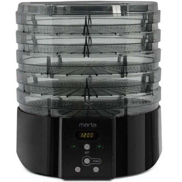 Пятиуровневая электросушилка c электронным контролем температуры для равномерной сушки трав, ягод, зелени, овощей, фруктов, орехов, грибов, приготовления вяленого мяса, птицы, рыбы, кисломолочных продуктов, а также растопки теста. Поддоны сушилки изготовлены из пищевого термостойкого пластика, устойчивого к высоким температурам, не выделяющего вредных веществ и посторонних запахов, сохраняющего вкус и аромат продуктов натуральными. Модель MT-FD1886I также укомплектована 3 поддонами для сушки ягод и 3 поддонами для приготовления пастилы. Многоярусная конструкция электросушилки позволяет разместить в небольшом объеме максимум продуктов и добиться их наилучшего распределения для быстрого и равномерного высушивания. Это самый эффективный способ сохранения продуктов, для каждого из которых можно подобрать оптимальный температурный режим от 40 до 70C и проконтролировать время работы на контрастном LED-дисплее. Электронное управление позволяет работать с электросушилкой с комфортом и удовольствием. Электронный контроль температуры гарантирует соблюдение условий сушки без Вашего участия, а электронный таймер позволит установить время сушки до 48 часов, по истечении которых сушилка выключится автоматически, полностью избавив от необходимости следить за ее работой. Встроенный вентилятор равномерно нагнетает воздух в пространство сушилки, обеспечивая необходимые условия для эффективного сохранения полезных микроэлементов.