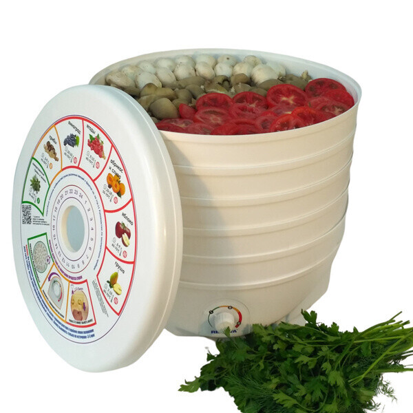 Сушка для фруктов Славда DVN37-500/5 в белом цвете, мощностью 516 Вт. Длина сетевого кабеля составляет 1 м. Модель оснащена механической системой управления. Температура регулируется в диапазоне от 30С до 70С. Есть встроенный вентилятор и регулировка потока воздуха. Для безопасности предусмотрена защита от перегрева. Есть режим приготовления пастилы, сушки грибов, фруктов, трав и овощей. Корпус сделан из износоустойчивого термостойкого пластика. Прорезиненные ножки препятствуют скольжению прибора и предотвращают повреждение столешницы.