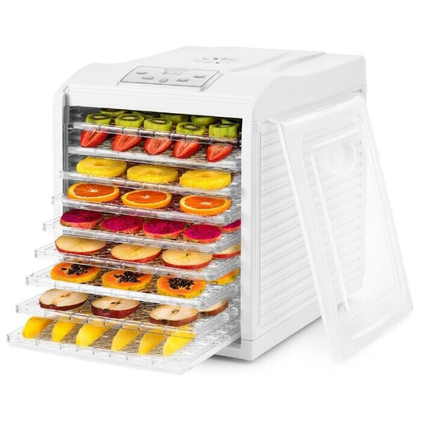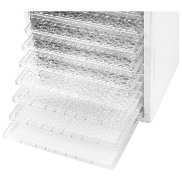 Электрическая сушилка Kitfort KT-1909 предназначена для сушки овощей, фруктов, ягод, грибов, корнеплодов, трав и зелени, а также мяса и рыбы, хлеба. С помощью специального поддона для жидкости можно готовить пастилу. Сушилка имеет в комплекте 9 поддонов из пищевого пластика, 1 поддон для жидкости и 1 сетку.
