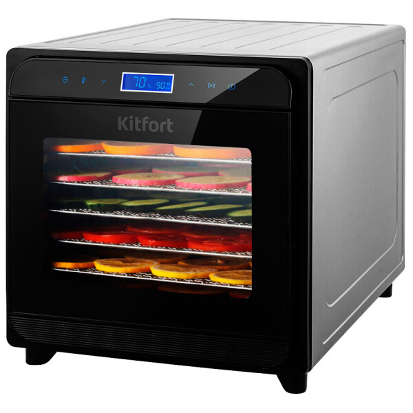 Вместительная электрическая сушилка Kitfort КТ-1934 предназначена для сушки овощей, фруктов, ягод, грибов, корнеплодов, трав и зелени, а также мяса и рыбы, хлеба. С помощью специальных сплошных поддонов можно готовить пастилу.