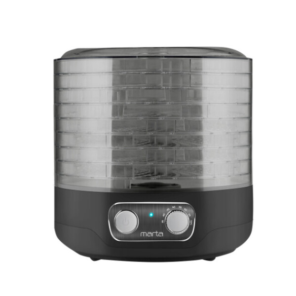 Корпус и поддоны сушилки изготовлены из пищевого термостойкого пластика, устойчивого к высоким температурам, не выделяющего вредных веществ и посторонних запахов, сохраняющего вкус и аромат продуктов натуральными.
