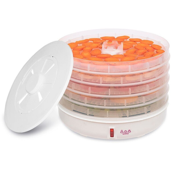 Предназначена для сушки ягод, овощей и фруктов. Обладает строгим дизайном и прост в использовании. Крышка с регулировкой вентиляционных отверстий. Благодаря наличию бесшумного режима прибор не будет доставлять неудобств при эксплуатации.