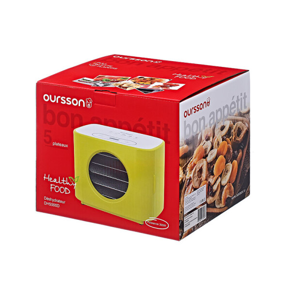 Сушилки для овощей и фруктов Oursson DH5000D/RD выполнена в виде стильного современного сушильного шкафа. В комплект входят 5 решеток из нержавеющей стали для сушки и поддон для крошек; дверца имеет смотровое окошко из закаленного стекла, позволяющее наблюдать за процессом приготовления. Благодаря LED-дисплею и цифровому управлению вы можете выставить необходимую температуру от 30 до 80 градусов и время приготовления до 99 часов