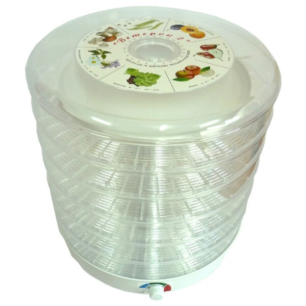 Мощная и вместительная сушка СПЕКТР-ПРИБОР Ветерок-2У – оптимальный выбор для тех, кто делает много домашних заготовок. Благодаря 6 вместительным поддонам в ней одновременно можно сушить 10 кг фруктов или овощей. Помимо самого корпуса и решеток для сушки в заводском комплекте идет емкость для сбора жира при приготовлении мясных и рыбных продуктов и большой красочный буклет с интересными рецептами, доступными для этой модели. Сушка СПЕКТР-ПРИБОР Ветерок-2У позволяет плавно регулировать температуру, что позволит выбрать оптимальный режим для самых разных продуктов. Рекомендуемые условия указаны в инструкции и на верхней крышке сушильной камеры. Поддоны модели прозрачные и позволяют визуально контролировать готовность продукта. При этом они легко моются и не окрашиваются от яркого ягодного или фруктового сока.