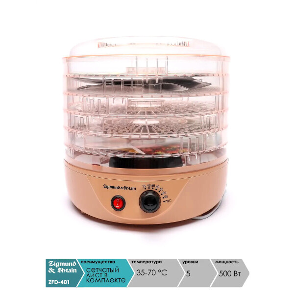 Сушка Zigmund & Shtain ZFD-401 поможет заготовить фрукты, овощи, грибы, орехи, ягоды, зелень, травы и многое другое. Она также справится с приготовлением сухариков и вяленого мяса.