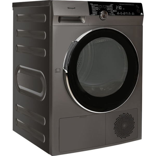 Отдельностоящая сушильная машина Weissgauff, оснащенная тепловой помпой и инверторным двигателем, имеет фантастический показатель загрузки до 9 килограммов белья, объем барабана 125 литров и невероятно экономичный класс энергопотребления А+++, что делает данную модель не только эффективной, но и по-настоящему выгодной.