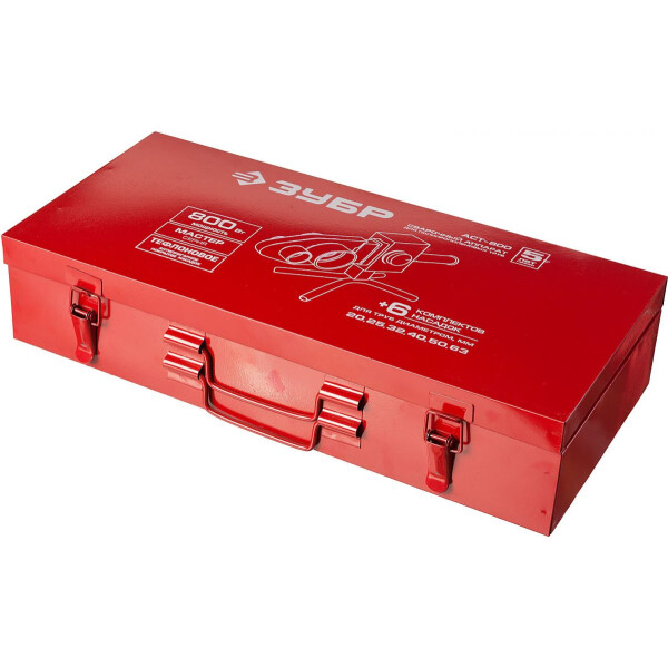 Высокая мощность позволит быстро прогреть аппарат. В комплекте представлены нагревательные насадки для труб диаметром - 20, 25, 32, 40, 50, 63 мм.