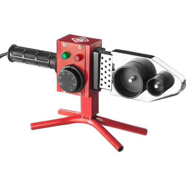 Сварочный аппарат и насадки удобно хранятся в металлическом кейсе, что предотвращает их потерю в процессе транспортировки. Обрезиненная рукоятка обеспечивает надежный хват и предотвращает проскальзывание во время работы. В зависимости от толщины соединяемых труб рабочая температура варьируется от 50°С до 300°С. Высокая скорость нагрева аппарата обеспечивает хороший темп работы.