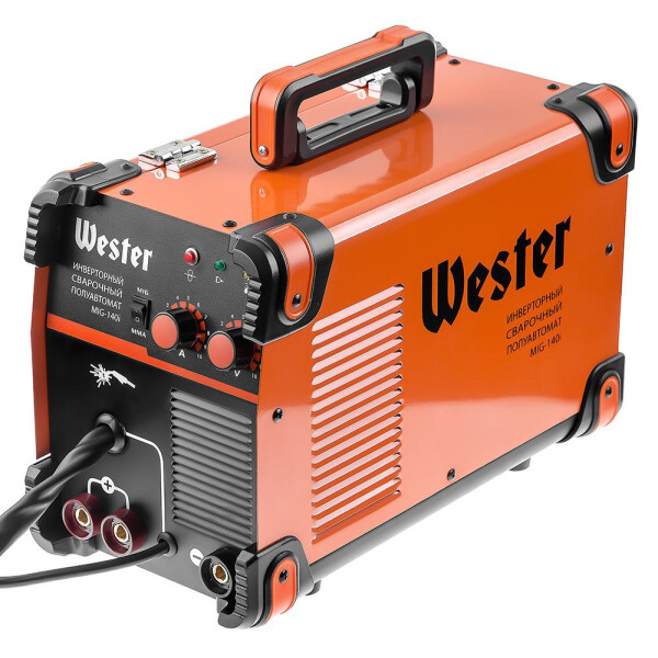 Инверторный сварочный полуавтомат WESTER MIG-140i предназначен для сварки и наплавки металла плавящейся электродной проволокой в среде защитного газа (MIG/MAG) или флюсовой проволокой, которая позволяет выполнять сварочные работы без газа. Также аппарат позволяет осуществлять электродуговую сварку (MMA) штучным покрытым электродом.