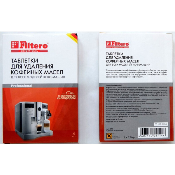Специальная высокоэффективная формула таблеток Filtero с активным кислородом позволит удалить кофейный осадок, жиры и кофейные масла, оседающие на внутренних поверхностях блока заваривания кофеварок и кофемашин. Таблетки Filtero очищают кофемашину от кофейных масел, продлевают срок службы аппарата, препятствуют поломкам из-за засоров фильтра.