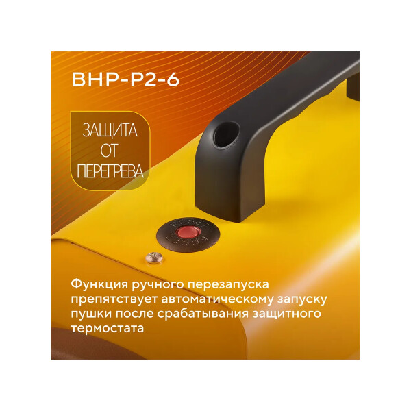 В цилиндрическом корпусе пушки нагревательные элементы особой формы способствуют созданию более эффективного направленного воздушного потока. В пушке предусмотрено два режима мощности и режим вентиляции. Обогреватель питается от сети 400В и имеет трёхфазную вилку, что обеспечивает простоту и удобство подключения.