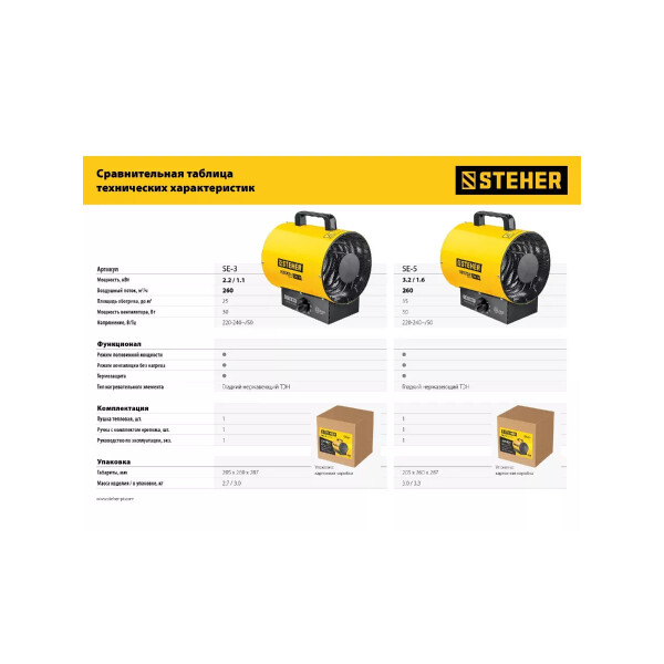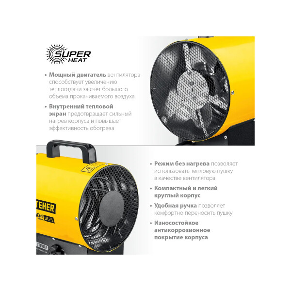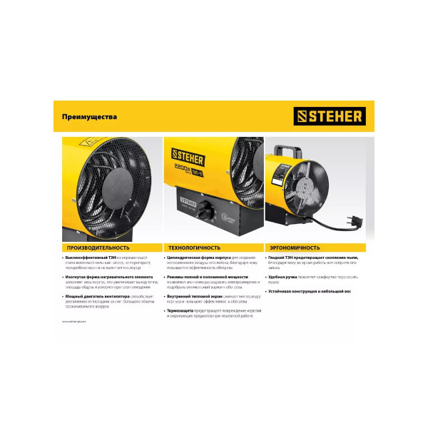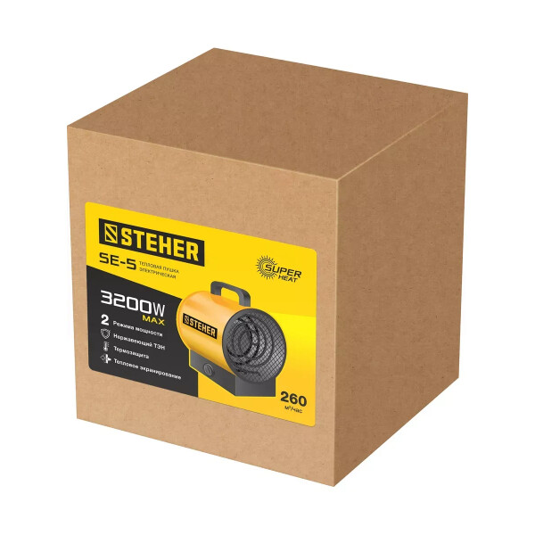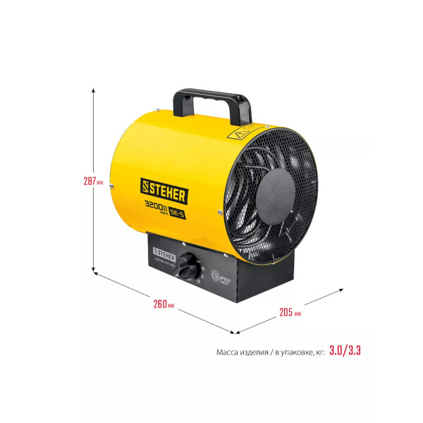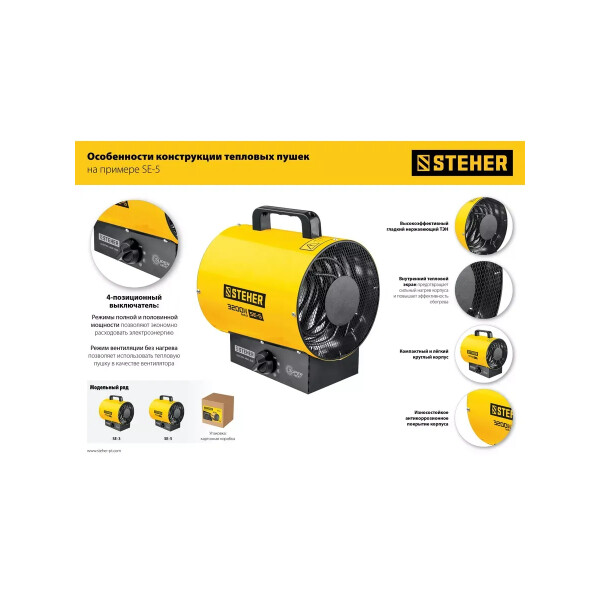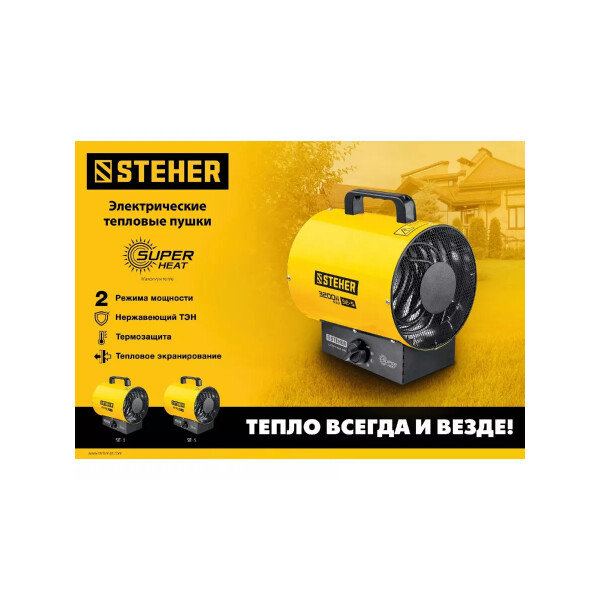 Электрическая тепловая пушка STEHER 3 кВт SE-5 - компактное устройство в цилиндрическом корпусе для направленного обогрева.