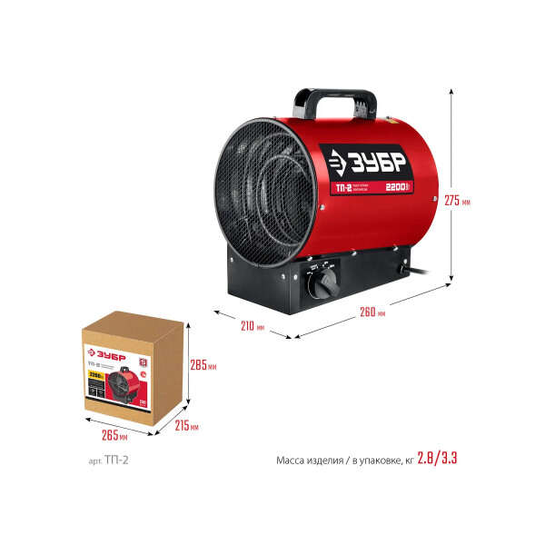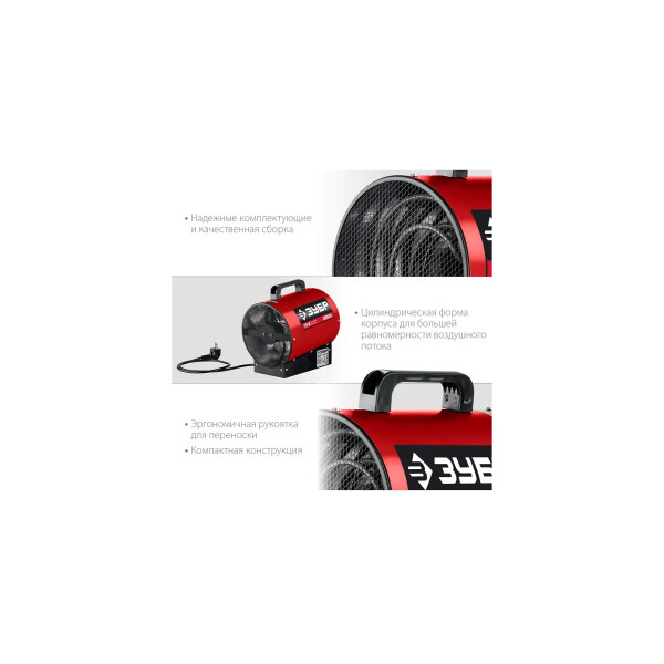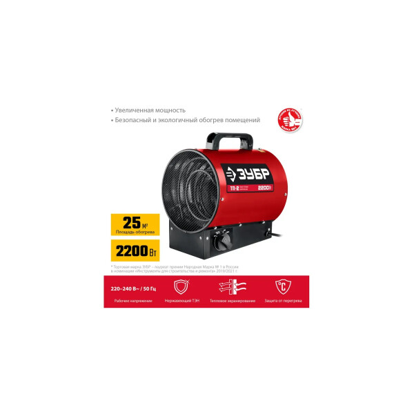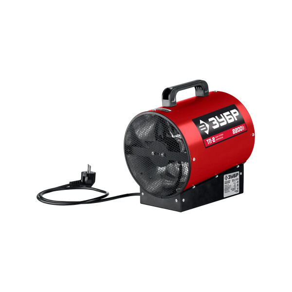 Электрическая тепловая пушка ЗУБР 2.2 кВт ТП-2 - компактный и легкий обогреватель в круглом корпусе для квартиры, загородного дома, мастерских гаражей и т.д.