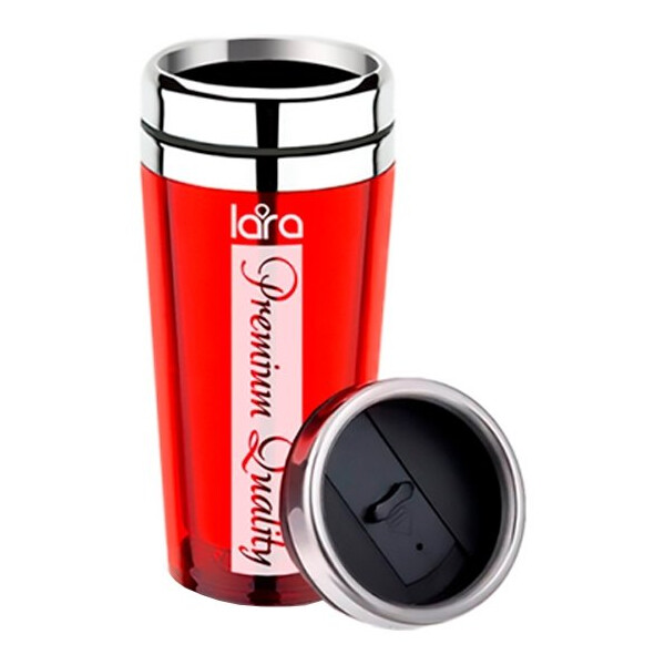 Термокружка Lara LR04-32 представлена в классическом bcgjkytybb c черно-красной расцветкой корпуса. Аксессуар удобен для длительных поездок на авто, прогулок по городу или любителей активного отдыха. Колба производится из нержавеющей стали, а корпус из пластика. Предусматривается наличие удобной для удержания рукоятки.