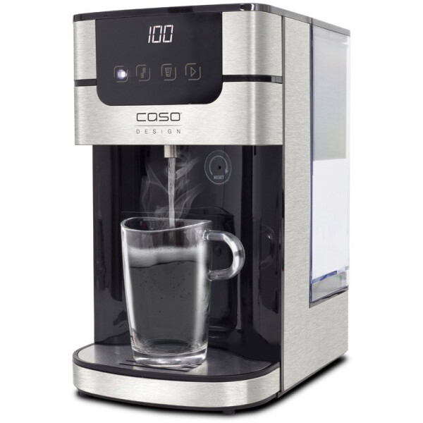 Диспенсер горячей воды CASO HW 1000 Touch. Горячая вода у вас под рукой за считанные секунды и в необходимом количестве. Объем резервуара для воды 4.0 литра, индикатор уровня, фильтр для смягчения воды. Энергосбережение до 50% по сравнению с чайником (не греется вода не нужная в данный момент). Выбор температуры воды 45 / 55 / 65 / 75 / 85 / 100 С.Выбор объема порции воды 100 мл / 200 мл / 300 мл / непрерывная подача. Сенсорная панель управления с дисплеем для отображения режимов. Регулируемая высота подставки для использования высокой или низкой посуды