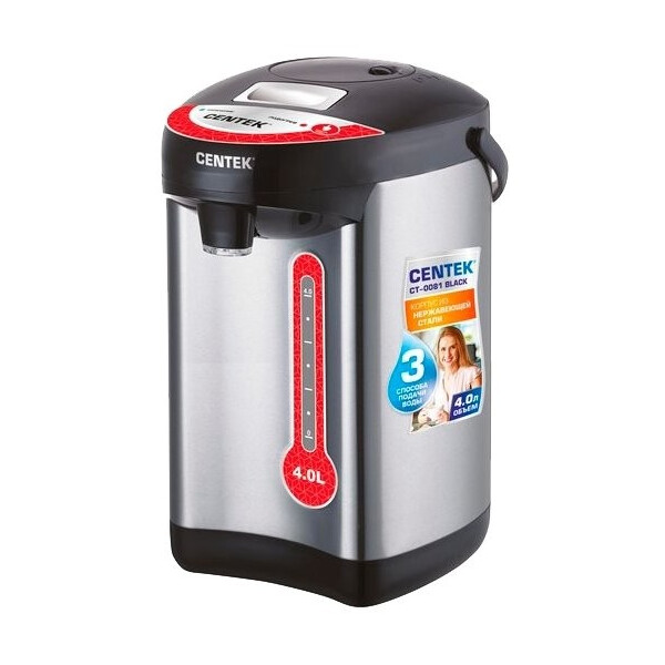Функциональность устройства позволяет ему стать удобным, простым, а также практичным в повседневном применении. Емкость термопота Centek CT-0081 рассчитана на 4 л воды. Прибор мощностью 750 Вт предусматривает использование электронасоса и ручного насоса, что позволяет с легкостью доставать из емкости воду. При малом количестве воды прибор блокируется от включения, что при поддержке защиты от перегрева способствует безопасному использованию термопота и исключению поломки.