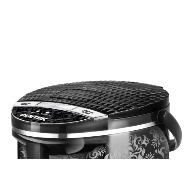 Термопот Centek CT-0085 выполнен из нержавеющей стали, имеет стилизованное покрытие и хромированную отделку. Ручка для переноски и вращающаяся подставка на 360 градусов делают использование прибора простым и удобным. Модель имеет две независимые кнопки подачи воды, защиту от включения без воды и LED-подсветку шкалы уровня воды. Мощность прибора в режиме подогрева составляет 35 Вт.