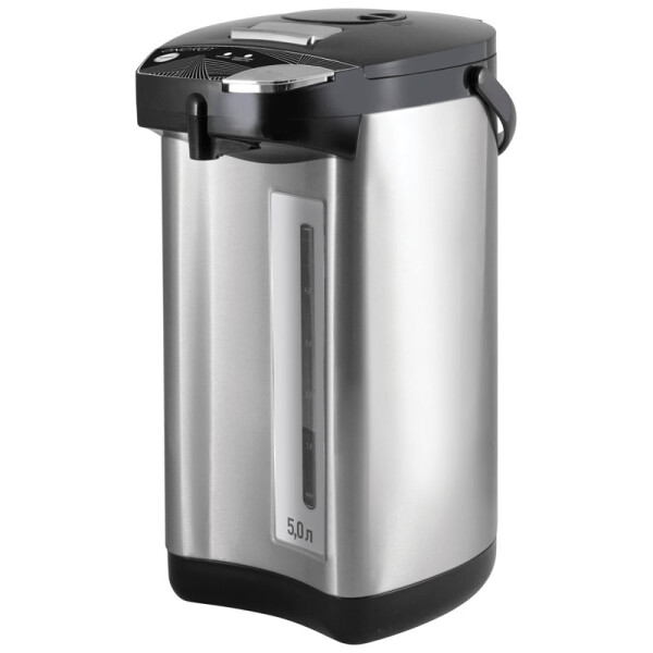 Мощность: 750 Вт Объем: 5 л Мощность в режиме поддержания температуры: 35 Вт 3 способа подачи воды: автоматическая (нажатием кнопки, нажатием чашкой) и ручная (помпа) Функция поддержания температуры Функция повторного кипячения Быстрое кипячение воды Энергосберегающий принцип работы Скрытый нагревательный элемент Нержавеющая стальная колба Съемный шнур питания (длина шнура - 1 м) Индикатор уровня воды Состав (материал): металл, пластмасса