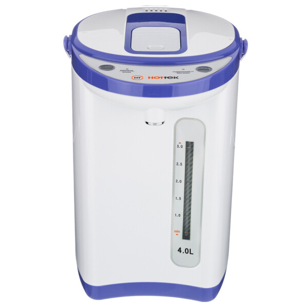 Термопот предназначен для кипячения воды и поддержания ее в горячем состоянии длительное время. Модель HT-973-100 объёмом 4л подходит как для домашнего использования, так и для офиса. Сочетает в себе несколько функций, таких как повторное кипячение и поддержание температуры. Есть 2 способа подачи воды – вы можете налить воду, нажав чашкой на клапан, или же при помощи автоматической помпы. Прибор сочетает в себе функциональность, экономичность, безопасность.