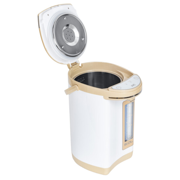 Термопот JVC JK-TP1015 объемом 5 литров c электронным управлением служит отличной альтернативой чайнику и экономит электроэнергию, тепло, воду и ваше личное время. В модели предусмотрено поддержание температуры 95 и повторное кипячение. Подача воды происходит двумя способами - нажатием кнопки на панели управления или касанием чашкой (поднесите чашку под носик термопота и нажмите на рычажок у носика). Термопот оснащен функциями защиты от перегрева и защиты от перепадов электричества.