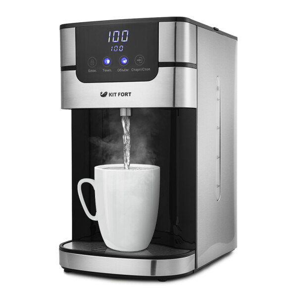 Термопот Kitfort KT-2501 служит для моментальной подачи воды заданной температуры без предварительного подогрева и ожидания. Термопот не потребляет электричество в режиме простоя. Подогрев осуществляется проточно, подача воды начинается в течение примерно 5 секунд после нажатия кнопки – столько времени занимает нагрев до температуры кипения.