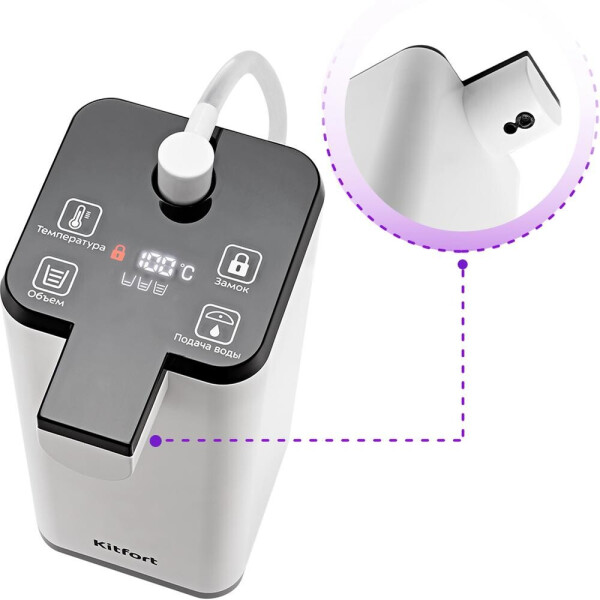 Термопот КТ-2507 служит для моментальной подачи воды заданной температуры без предварительного подогрева и ожидания. Подогрев осуществляется проточно, подача воды начинается примерно в течение пяти секунд после нажатия кнопки.