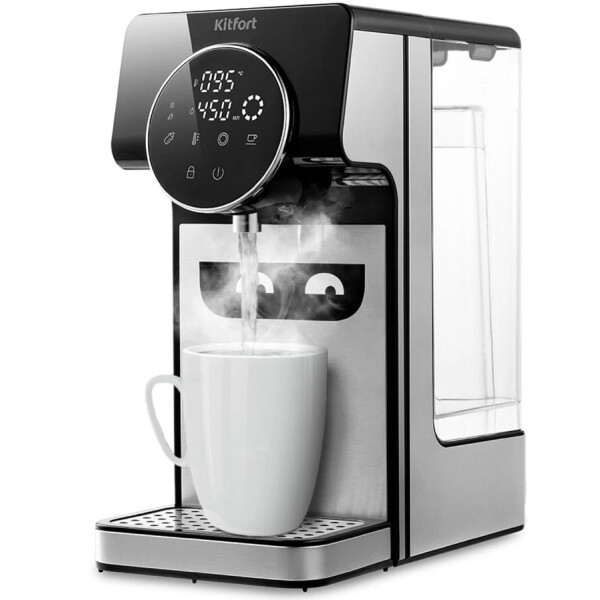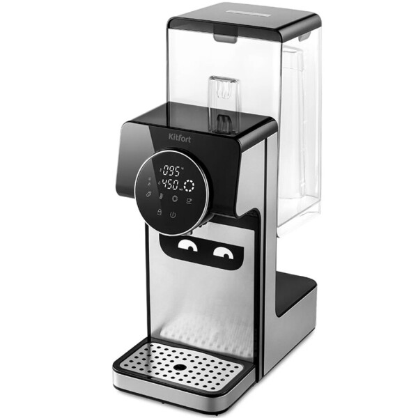 Термопот KT-2510 служит для моментальной подачи воды заданной температуры без предварительного подогрева и ожидания. В отличие от чайников, термопот не нагревает лишний объём воды, экономя электроэнергию. Нагрев до температуры кипения занимает 5 секунд. У термопота 3 режима работы: обычный, Детское питание, Чай/кофе. Он оснащён функцией выбора t и может не только вскипятить воду, но и нагреть её до 40, 45, 55, 65, 70, 85, 92 и 100 С. Есть возможность выбрать порцию воды объёмом: от 60 до 400 мл. Необходимо приготовить детскую смесь, заварить кашу? Или, возможно, вы чайный гурман? 8 температурных режимов помогут вам в заваривании различных сортов чая, кофе и при приготовлении детского питания. Блокировка экрана не позволит получить ожог при случайном включении подачи воды или испортить поверхность стола кипятком, а также защитит от случайных нажатий на кнопки детьми. Термопот отлично подойдёт для маленьких квартир и студий с компактными кухнями. Благодаря небольшим размерам и минималистичному дизайну отлично впишется в любой интерьер. Все материалы, контактирующие с водой, абсолютно безопасны и экологичны. Вместимость съёмного резервуара 2.7 л, такого объёма хватит на 9 кружек чая ёмкостью 300 мл. Также у термопота есть полезная функция - автоматическая очистка от накипи. Это процесс очищения бойлера от накипи и отложений.