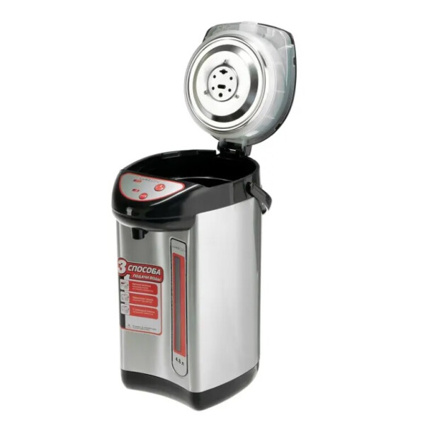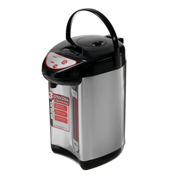 Термопот LuazON LET-4001 предназначен для кипячения воды и поддержания её температуры. Имеет 3 способа подачи воды: механическая помпа, электрическая помпа и нажатие кружкой. Оснащён индикатором уровня воды и защитой от случайного нажатия.
