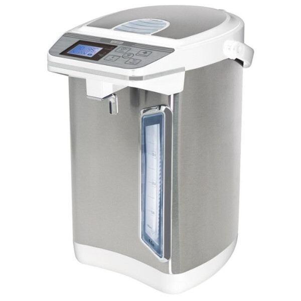 Mystery MTP-2442 предусматривает на корпусе LCD-дисплей, с которым процесс управления устройством будет еще проще. Термопот мощностью 700 Вт оборудован закрытым нагревательным элементом и при малом количестве воды отключается, что защищает прибор от поломки. Корпус модели выполнен из металла, что гарантирует его надежность. На него нанесена шкала уровня воды, которая предусматривает наличие подсветки, что позволяет правильно отслеживать количество воды внутри термопота даже в темноте.