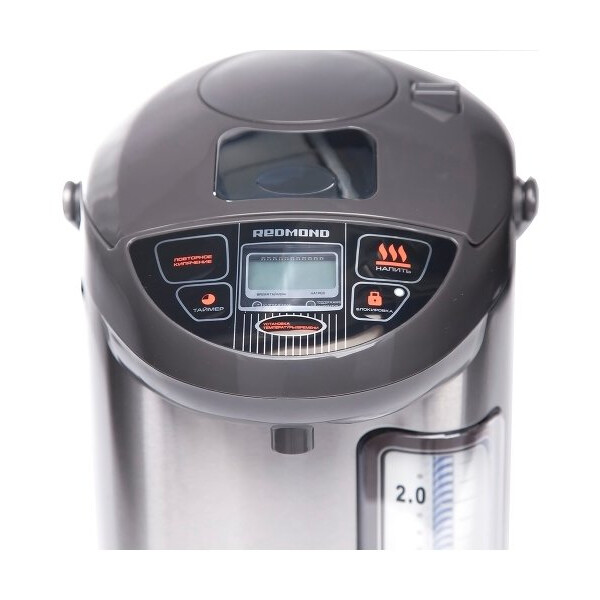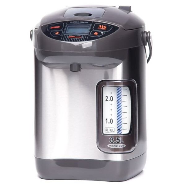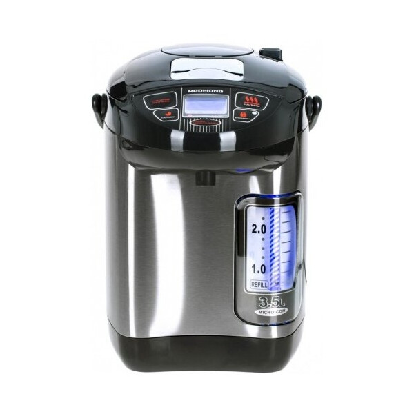 С термопотом REDMOND RTP-M801 у вас дома под рукой всегда будет горячая вода для любимых напитков. Нужно лишь выбрать требуемую температуру: 65, 85 или 98°C. Также вы можете воспользоваться таймером включения, чтобы термопот вскипятил воду к нужному времени. Индикация работы, электронное управление с ЖК-дисплеем, подсветка шкалы уровня воды и возможность выбора любого из трех способов розлива воды делают RTP-M801исключительно удобным в обращении.