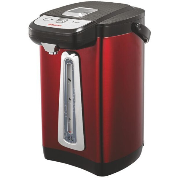Чайник-термос с функцией кипячения и поддержания температуры на уровне 85-90?С, подача воды кнопкой на панели и нажатием чашки, подсветка шкалы, колба из нержавеющей стали. Световые индикаторы режима работы. Объем: 6,0 л. Мощность: 750 Вт.