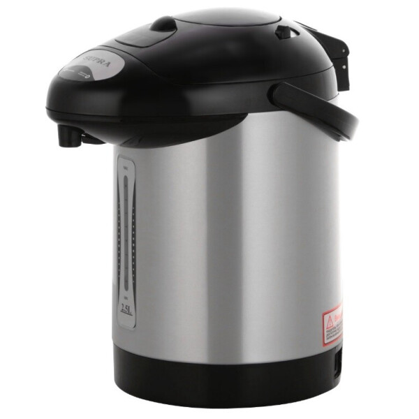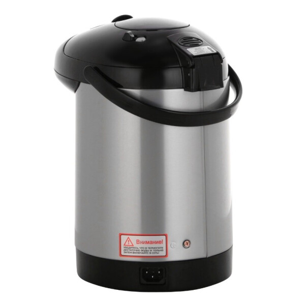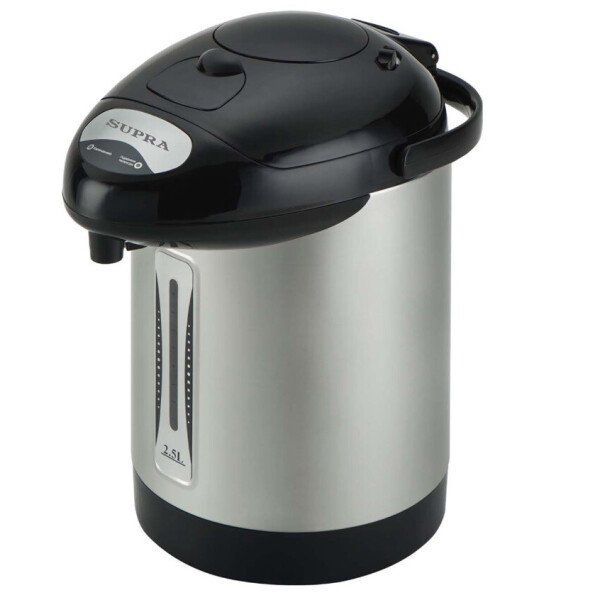 Термопот Supra TPS -3001 удобное и экономичное устройство, удачное решение для большой семьи, в которой горячая вода требуется регулярно и много. Нагревательный элемент мощностью 700 Вт готовит кипяток за считанные минуты, а потом поддерживает температуру 98 столько, сколько потребуется, потребляя при этом всего 35 Вт. ПОЛНАЯ НАГЛЯДНОСТЬ Объём колбы составляет 2,5 л, так что все домочадцы смогут сделать себе горячие напитки. Индикаторная шкала поможет точно отмерять порции и следить за расходом жидкости, чтобы своевременно её пополнять. При необходимости вы сможете использовать функцию Повторное кипячение. Светодиодные индикаторы отображают активный режим работы. ОСОБЕННОСТИ КОНСТРУКЦИИ Эта модель оснащена простой в использовании механической помпой. Подставьте чашку под носик и нажмите на кнопку, расположенную в крышке. Для переноса прибор снабжён надёжной ручкой, сетевой шнур снимается, что будет удобно при хранении термопота. ПРОСЛУЖИТ ДОЛГО Внутренний резервуар выполнен из высококачественной нержавеющей стали прочного и гигиеничного материала. Он устойчив к коррозии, а значит, и протечкам, не придаст напиткам постороннего привкуса или запаха. Прочие элементы сделаны из пластика. Безопасность обеспечивают системы защиты от перепадов напряжения в электросети и перегрева.