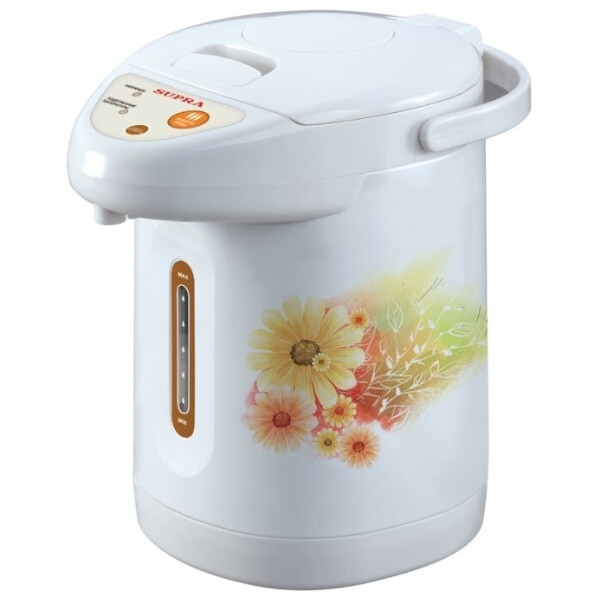 Еще одним неоспоримым достоинством Supra TPS-3001 является ручной насос: вы сможете с легкостью наполнить вашу чашку водой без наклона электрочайника и расплескивания кипятка по поверхности стола. Supra TPS-3001 имеет три температурных режима. С блокировкой крышки кипяток не сможет ошпарить вам руки при переноске термопота или при наливании воды в чашку. С функцией самоочистки уход за Supra TPS-3001 станет еще проще и быстрее.