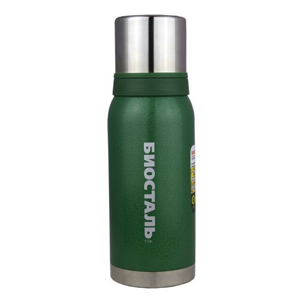 Термос с узким горлом NВА-1000G, покрытый "молотковой" эмалью относится к серии «ОХОТА». Термосы этой серии вобрали в себя самые передовые энергосберегающие технологии и отличаются применением более совершенных термоизоляционных материалов, а так же новейшей технологией по откачке вакуума. Термос предназначен для хранения горячих и холодных напитков (чая, кофе и пр.) и укомплектован пробкой без кнопки и двумя крышками-чашками. Пробка без кнопки надежна, проста в использовании и позволяет дольше сохранять тепло благодаря дополнительной теплоизоляции. А чашки удобной ёмкости (150 мл и 200 мл) позволяют использовать термос с наибольшим удобством.