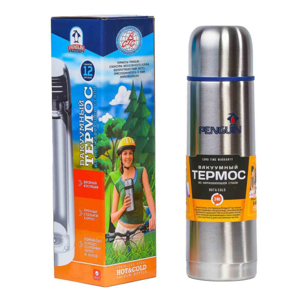 Термос из нержавеющей стали с глухой пробкой лишит вас некоторого удобства, предоставляемого пробкой с кнопкой, но зато можно получить дополнительные 1-2 градуса за счет снижения теплопотерь через пробку и не нужно беспокоиться о качестве пробки, т.к. глухая пробка абсолютно надежная. Изделие имеет отличные температурные характеристики. Температура через 24 часа не менее 50-55 С, это один самых высоких показателей на рынке, для термосов такого объема. Такие высокие температурные данные обеспечиваются современными технологиями создания глубокого вакуума, нанесением специального отражающего покрытий Cu-Ni на внутреннюю сторону колбы.