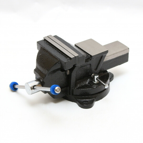 Тиски слесарые поворотные предназначены для зажима обрабатываемых деталей, для их последующей обработки. Выполнены из высококачественного чугуна, (рукоятка из стали), имеется возможность крепления к столу, для работы с тяжелыми заготовками, также в хвостовой части тисков имеется наковальня. Ширина захвата скоб - 100 мм.