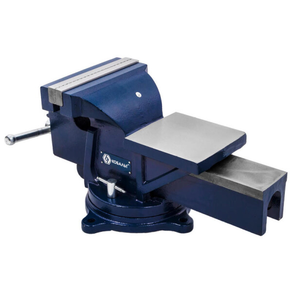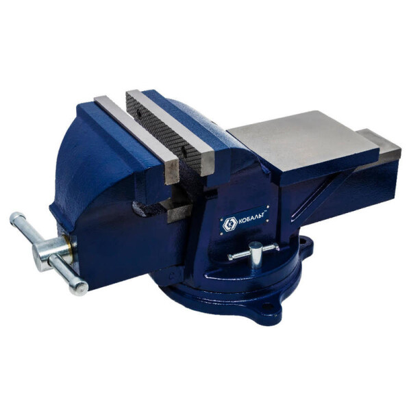 Слесарные поворотные тиски КОБАЛЬТ 246-005 изготовлены из прочного чугуна. Материалом зажимного винта служит углеродистая сталь. Ширина губок составляет 200 мм. Приспособление применяется при слесарных работах для надежной фиксации заготовки. Для удобства работы наковальня имеет большой размер - 145х140 мм. В основании предусмотрены посадочные пазы - для крепления тисков к верстаку или рабочему столу. Конструкция губок - съемная.