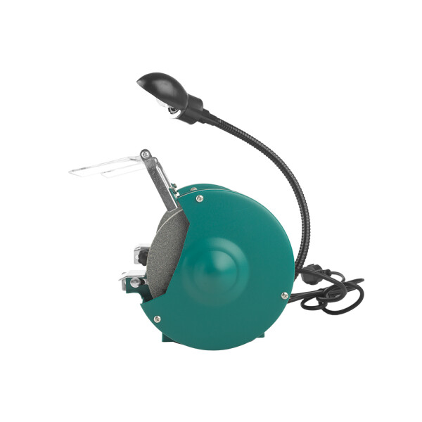 Точильный станок STURM BG6015L - бытовой прибор для затачивания различных режущих инструментов. Станок оснащен двумя пильными кругами: один служит для черновой обработки, второй - для чистовой. Комплектуется лампой на гибкой ножке для лучшего освещения рабочего места. Кнопка включения защищена от пыли для предотвращения короткого замыкания. Предусмотрены прозрачные пластиковые экраны для защиты оператора от искр.