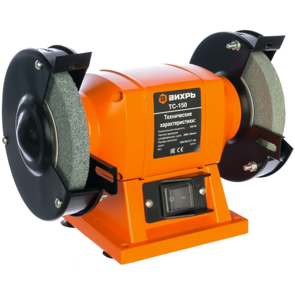 Точильный станок ВИХРЬ ТС-150 предназначен для заточки инструментов любого типа. Отличную заточку инструментов обеспечивают качественные круги, толщина которых составляет 16 мм. Панель управления закрыта пластиком, что препятствует ее запылению или случайному нажатию кнопки пуска. Станок подключается к стандартной сети электропитания с напряжением 220 В.