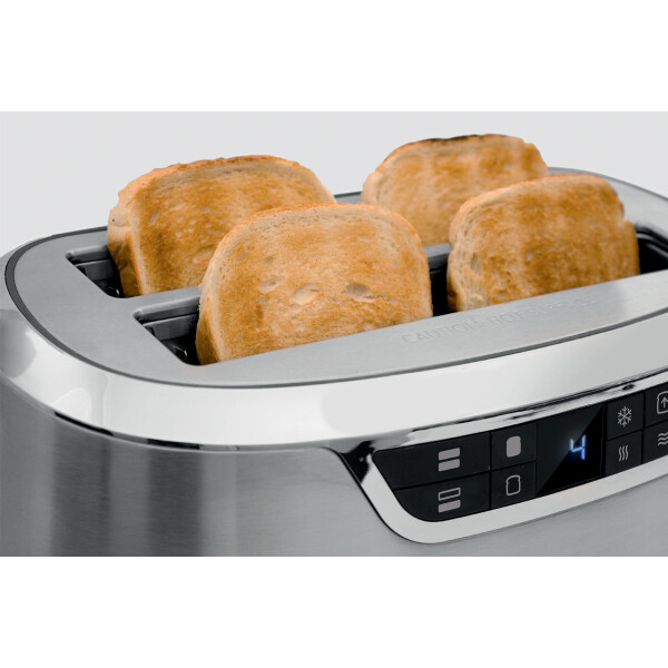 Caso T4 – простой в использовании тостер, с помощью которого можно быстро получить на завтрак хлеб, поджаренный в соответствии с вашими предпочтениями. Также его можно использовать для подогрева булочек. Благодаря корпусу из матовой нержавеющей стали с хромированными вставками выглядит он особенно элегантно.