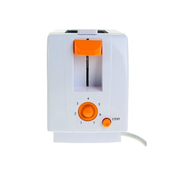 Тостер с подставкой для подогрева булочек и больших кусков хлеба. 750 Вт, 7 степеней прожарки, кнопка STOP для остановки процесса обжаривания, автоматическая подача хлеба