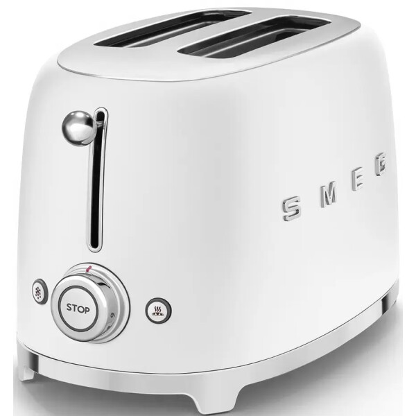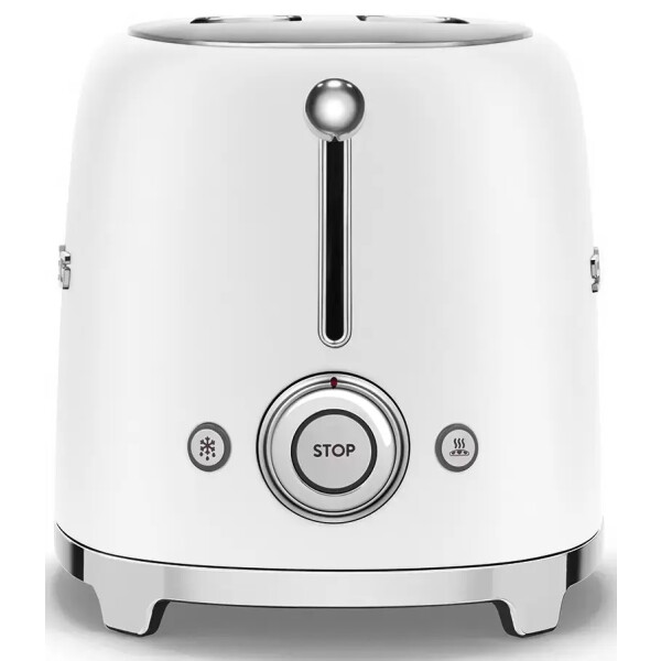 С помощью переключателя на корпусе тостера Smeg TSF01WHEU устанавливается интенсивность обжарки. Кроме того, в тостере можно разогревать булочки и сосиски, а также размораживать отдельные ингредиенты перед их дальнейшим использованием. Для подогрева булочек тостер оборудован специальной решеткой. В двух отделениях тостера одновременно готовится два кусочка хлеба. Чтобы их обжарка была равномерной, используется автоматическое центрирование тостов. Устойчивость тостеру придают противоскользящие ножки.
