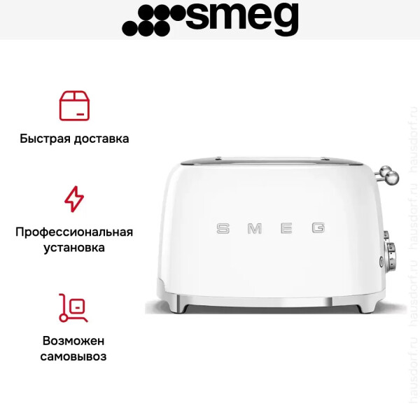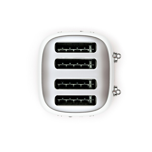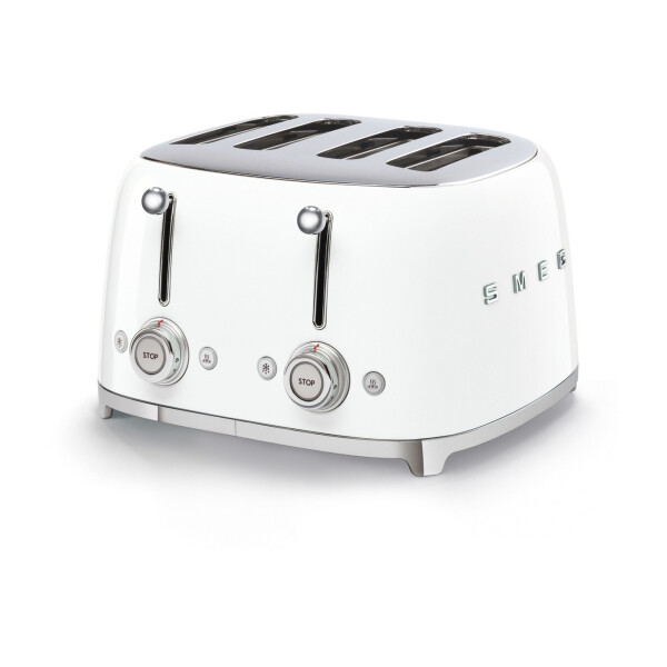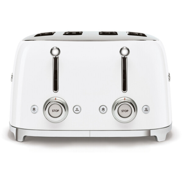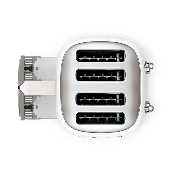 Тостер Smeg TSF03WHEU модель белого цвета на четыре ломтика. Возможен выбор из 6 уровней мощности для индивидуальной настройки интенсивности поджаривания. 2 независимых панели управления позволяют отдельно настроить режимы для разных отделений. Для каждых двух ломтиков предусмотрен отдельный съемный поддон. Модель выполнена в корпусе из нержавеющей стали, что гарантирует долговечность использования.