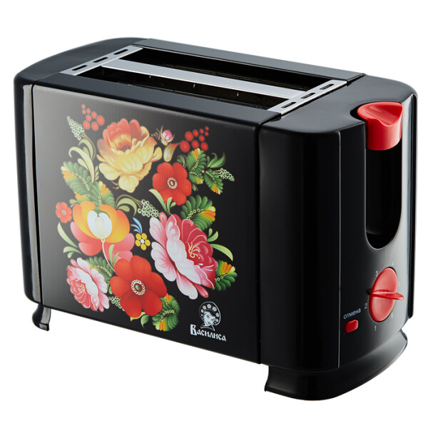 Тостер Василиса ВА-102 Жостово привлекает внимание своим оригинальным дизайном. Он выполнен в металлическом корпусе с декоративным покрытием и станет украшением на вашей кухне. Модель имеет 6-позиционный таймер, который позволяет регулировать степень поджаривания тостов. Функция отмены и извлекаемый поддон для сбора крошек делают эксплуатацию прибора комфортной.
