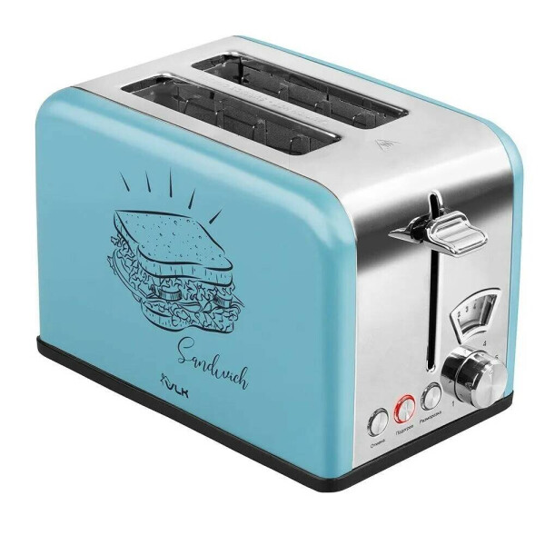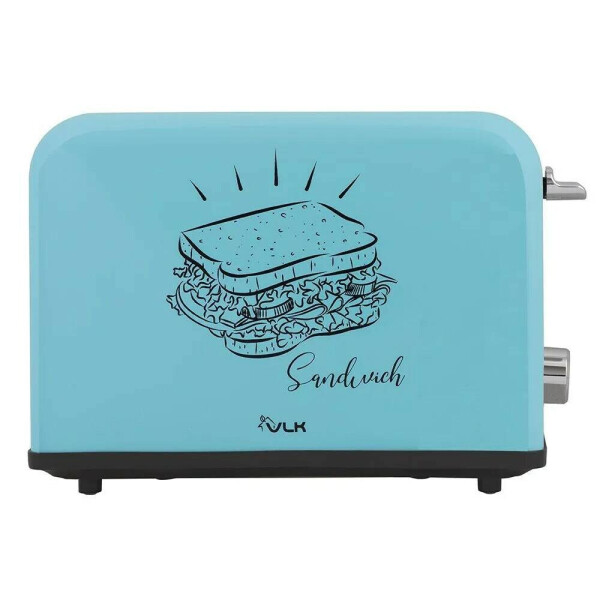 Тостер VLK Palermo 100. Приятный внешний вид предают боковые панели нежно голубого цвета с симпатичным принтом, а также стальная вставка по середине с элементами управления, выполненными в едином стиле. Прорезиненные ножки способствуют лучшей фиксации на любой поверхности по сравнению с пластиковыми ножками.